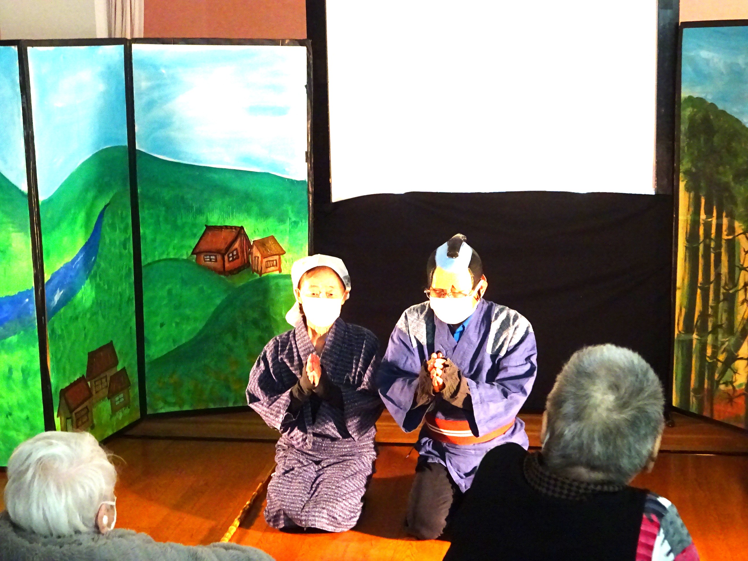 最初は、影絵劇から(#^.^#) 「親孝行息子のお話」の劇をしてくれました!