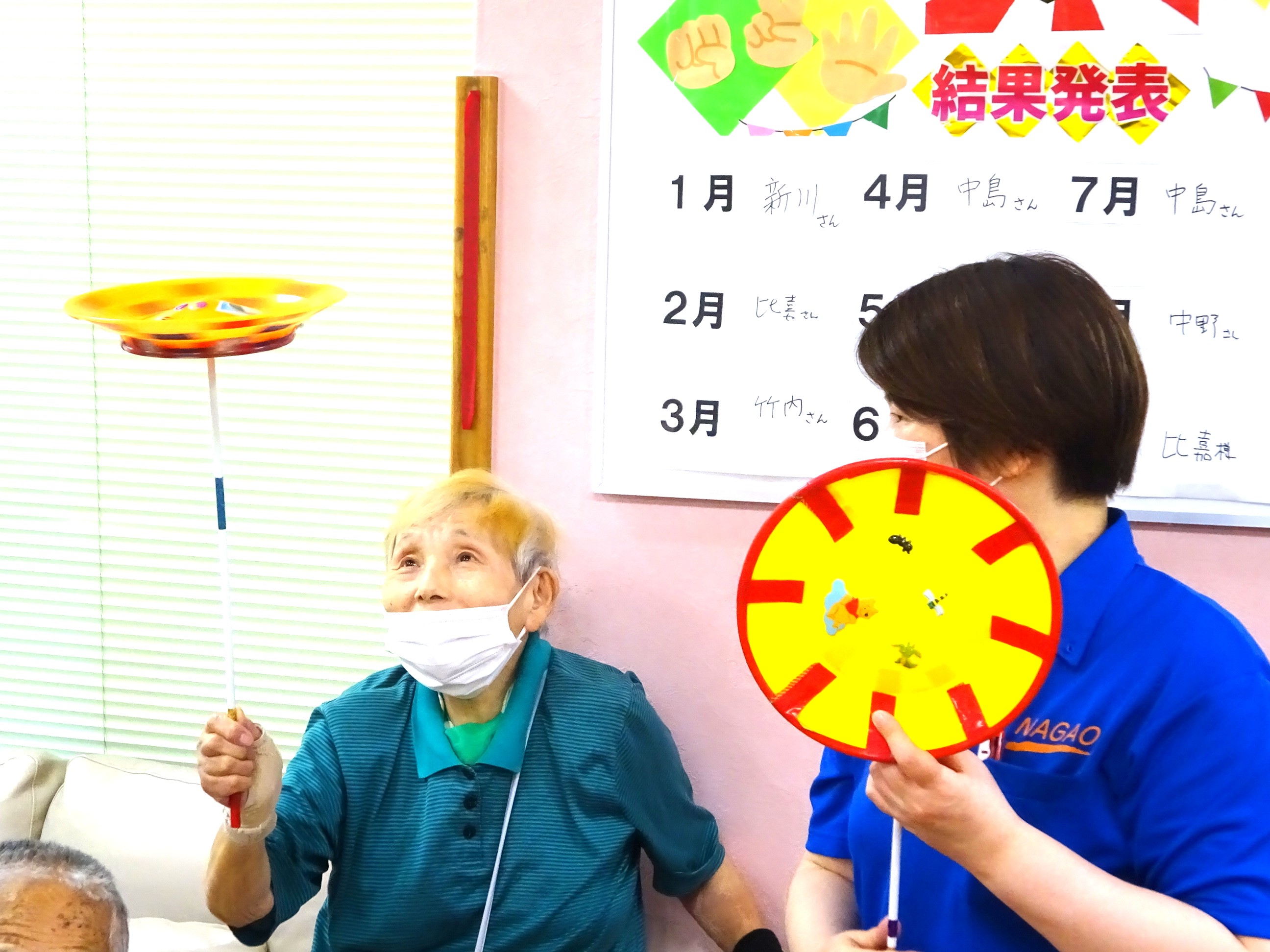 職員がゲーム対決をしたり、ジャンケン大会をしたりしました。