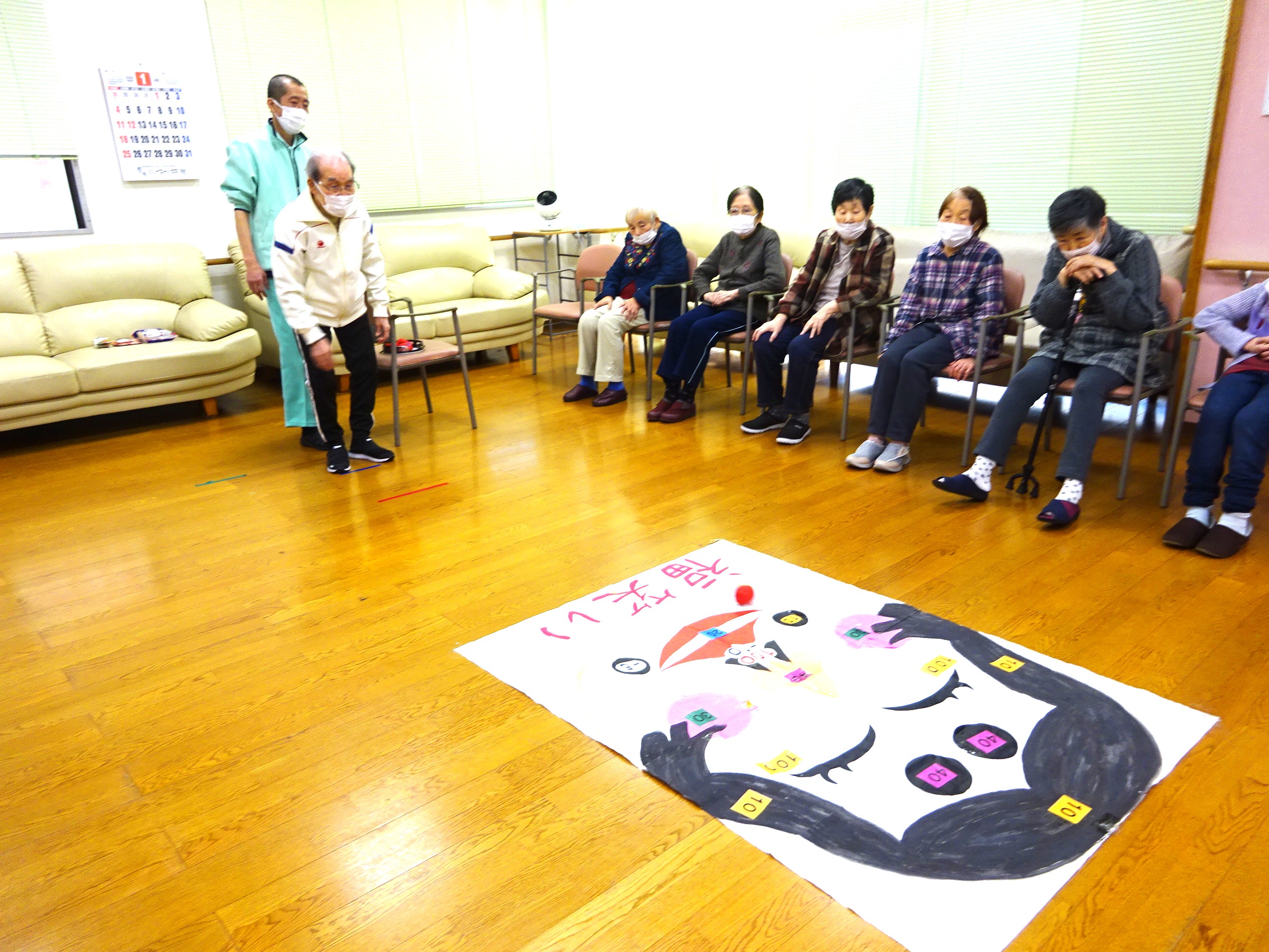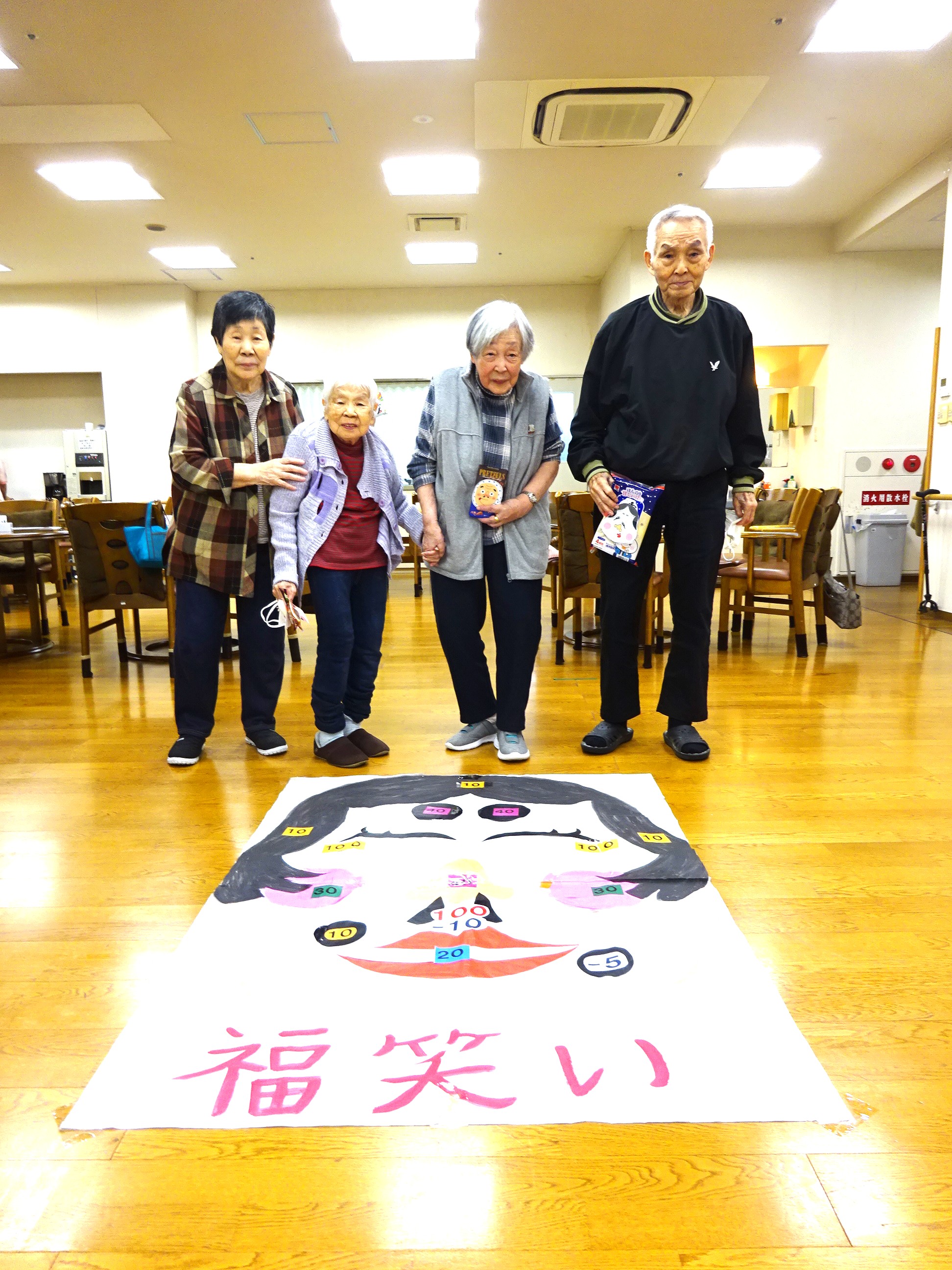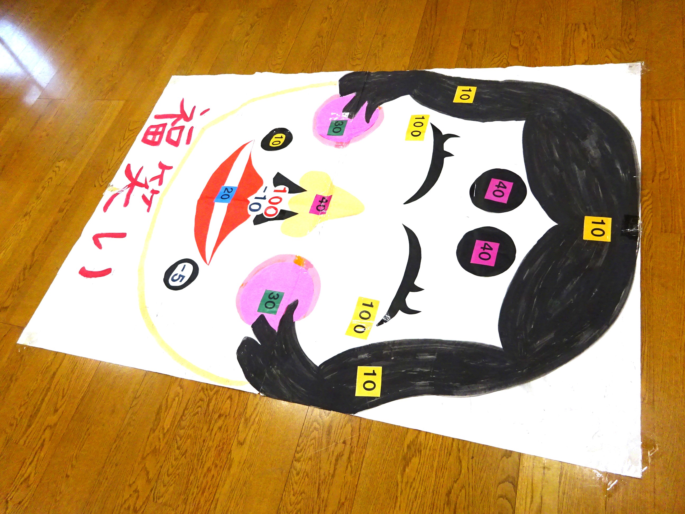 ☆福笑い☆ 2025年1月5日6日(月・火) 毎年恒例の福笑いゲームを開催しました(*’ω’*)♪ 福笑いの顔に、お手玉を投げて点数を争うゲームです! 皆さん100点目指して頑張りました(^_-)-☆ 1等賞、2等賞、ブービー賞には景品を(*’ω’*) 皆さん楽しんでくれて良かったです☆☆
